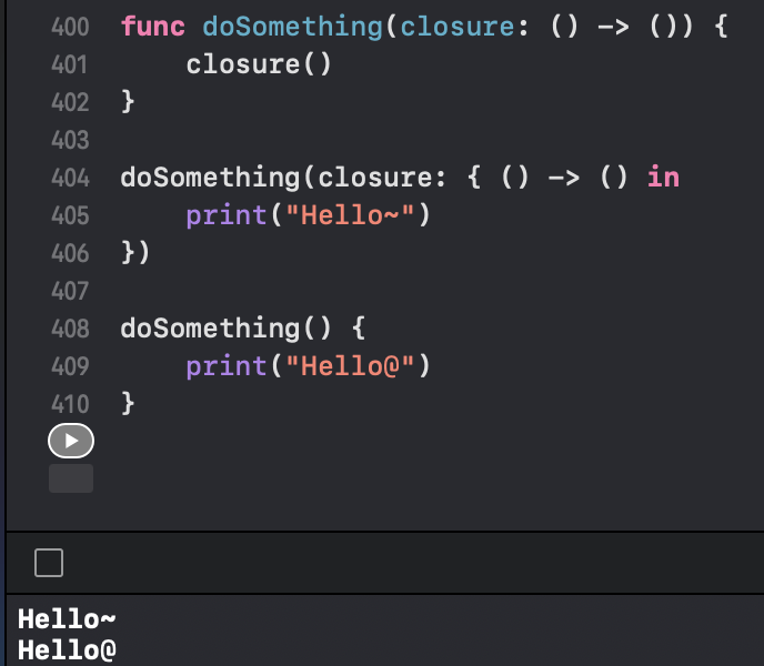 클로저를 받아서 클로저를 호출해주는 doSomething 함수와, 클로저를 넘겨주는 코드를 가져와서 간소화를 해보겠다.