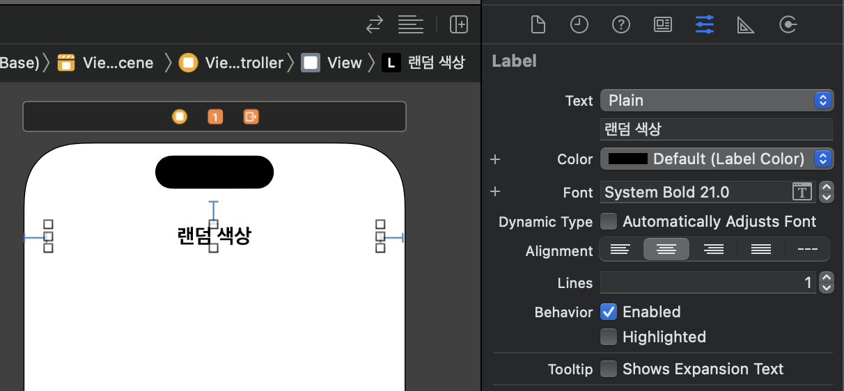 그러면 처음에 지정한 위치에 있던 Label 컴포넌트가 이렇게 제약조건이 설정되어서 위치가 변하게 된다.