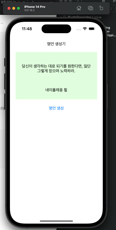 이렇게 간단한 명언 생성 앱을 구현해보았다.