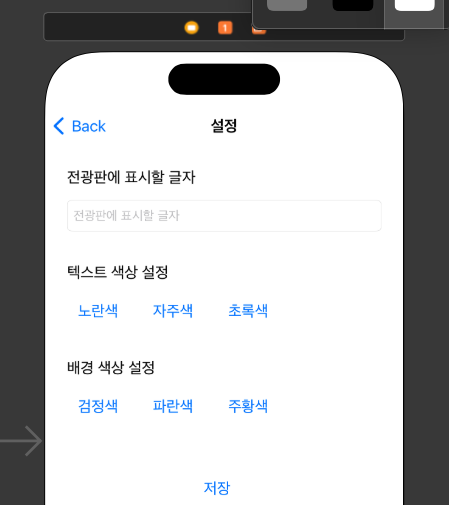 자, 그럼 설정 화면에서 전광판의 배경을 설정하는 버튼의 외형부터 해당 색상의 이미지 파일로 대체해보자.