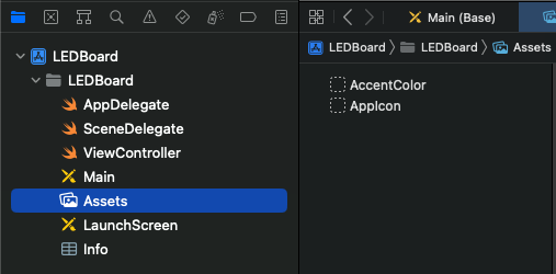 프로젝트 폴더 내에 Assets 또는 Assets.xcassets라고 하는 것을 찾을 수 있는데, 앞으로 앱에서 활용할 에셋 파일들은 여기에 두면 된다.