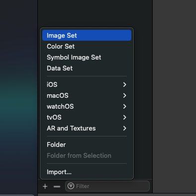 Assets 선택 -> 하단 + 버튼 -> Image Set 선택