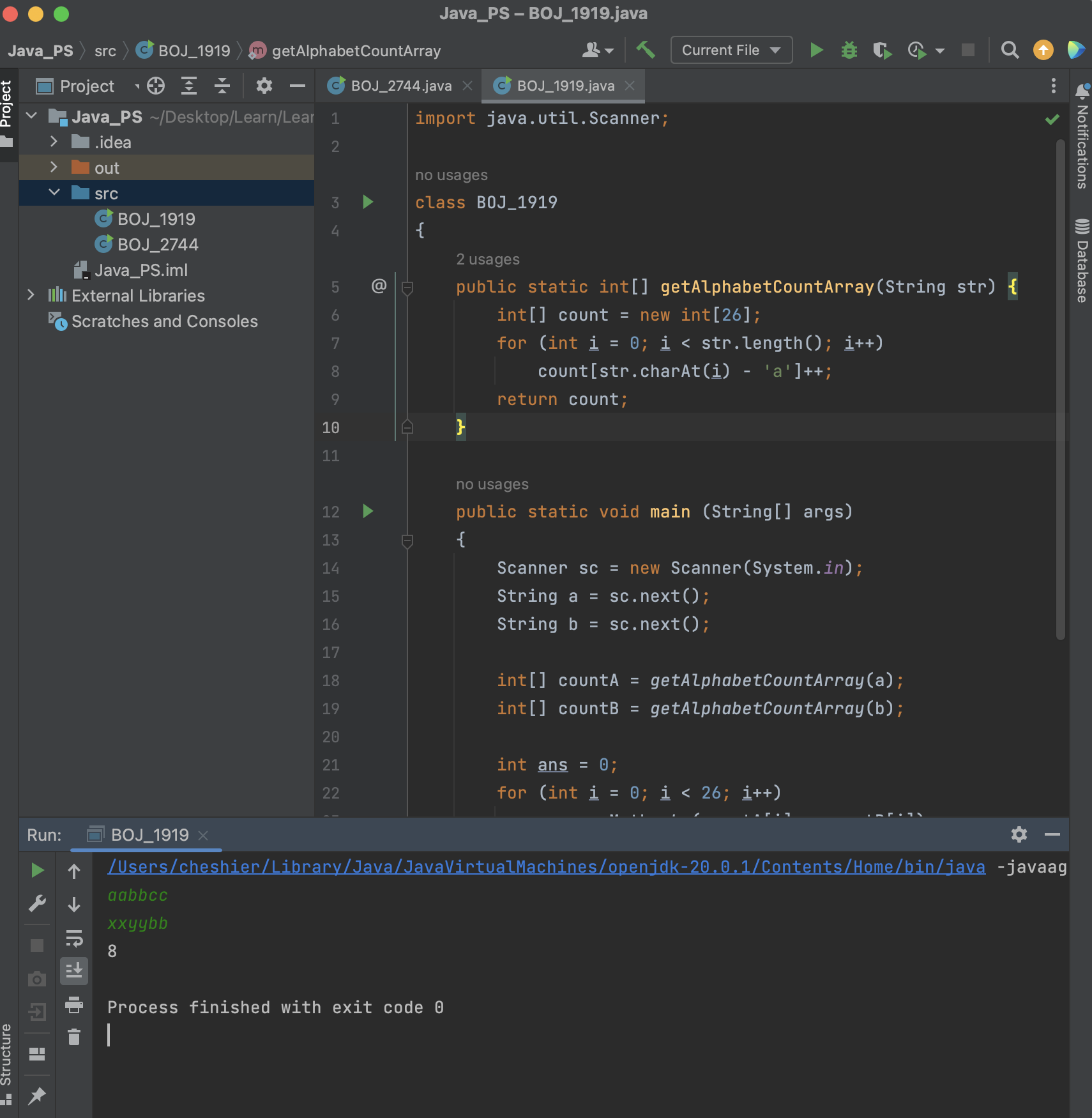 이렇게 각 문자열을 이루는 알파벳의 위치를 기록하는 배열을 받는 코드를 리팩토링하는 과정으로서