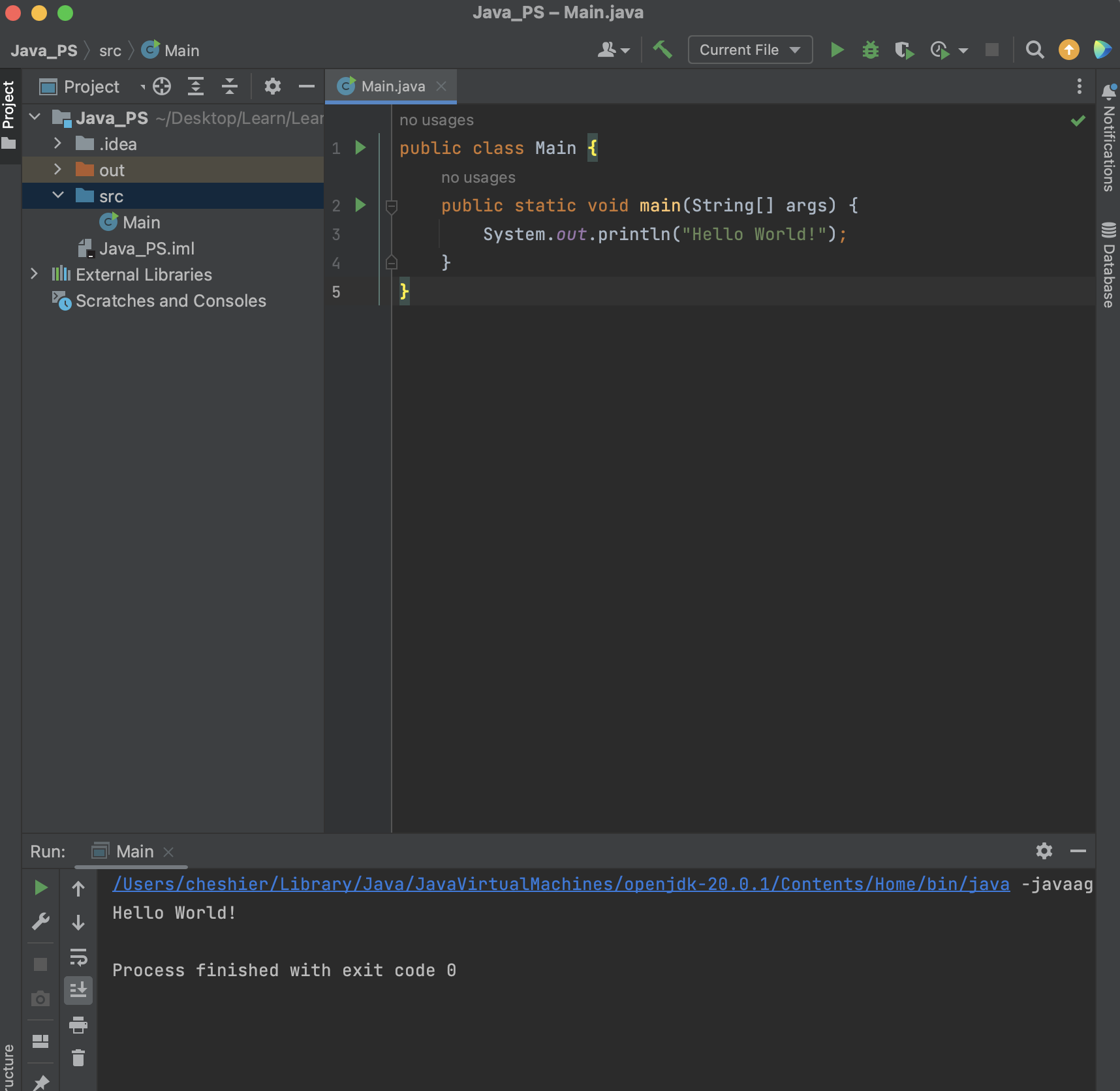 Python, JS, C++ 등 타 언어는 스크립트 파일별로 런타임을 쉽게 분리할 수 있었지만, Java는 기본적으로 프로젝트를 기준으로 런타임이 구성되어 뭔가 까다롭다는 생각이 들었다. 그런데 강의를 보면 VSC, IntelliJ, Eclipse 3개 IDE 중 하나를 골라서 사용하라고만 나와있고 프로젝트 세팅에 관한 내용은 생략돼있어서 나처럼 처음으로 Java 기반 PS 환경을 구성해보는 사람은 당황할 수도 있다고 생각했는데, 생략돼있는 이유가 있다. 매우 간단하거든. 그냥 src 디렉토리 안에 Main.java 하나 만들어두고 거기에 main 메소드 정의해서 쓰면 된다.