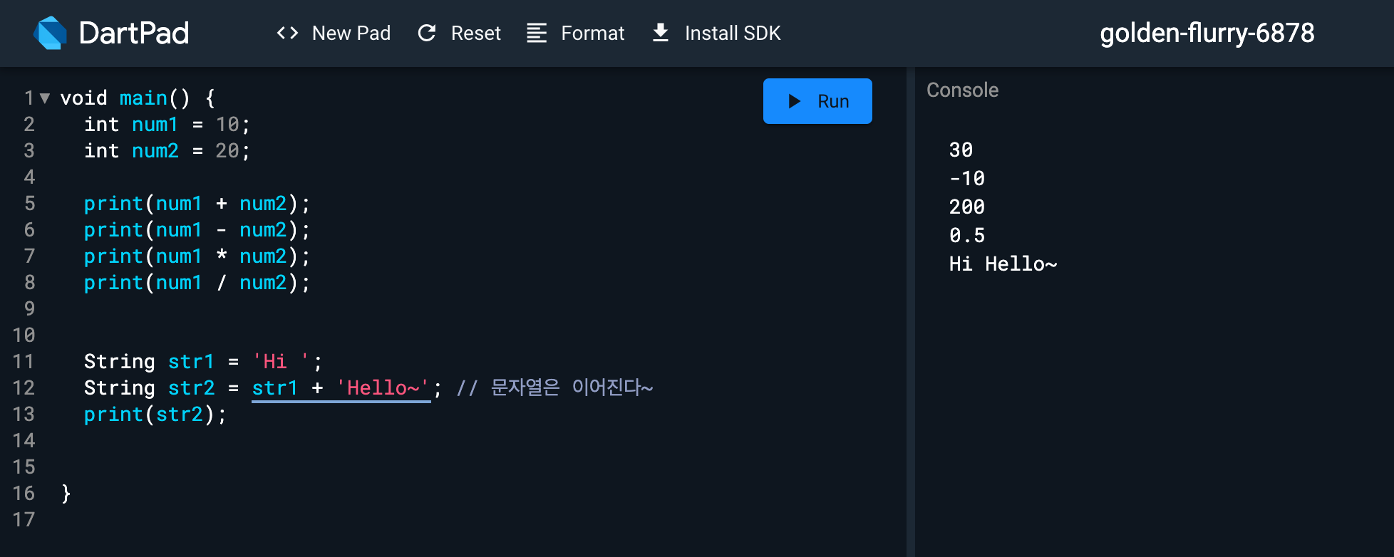 이렇게 2일동안 Dart의 기본 문법과 연산자의 사용법에 대해 알아보았다~