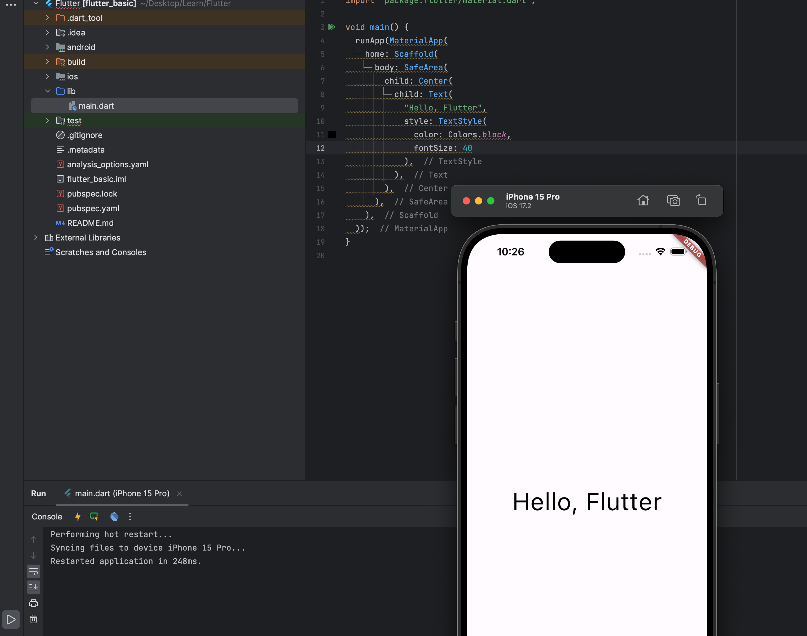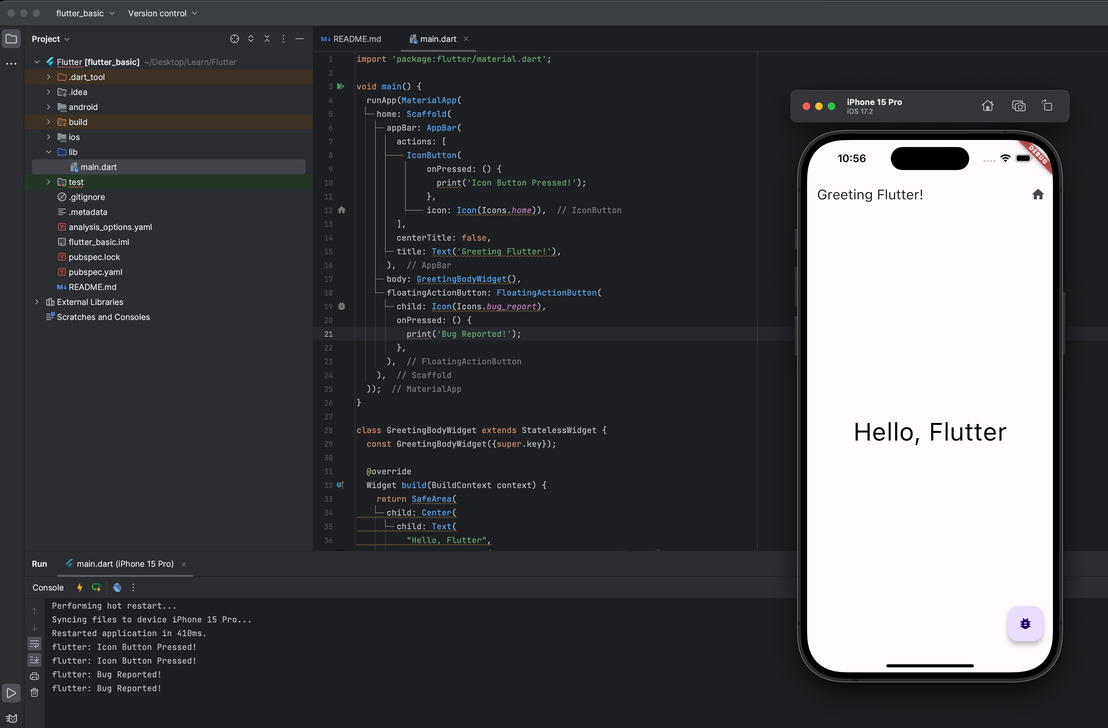 - Hot restart: 앱의 상태가 초기화되고 재시작되며, 코드의 변경 사항을 확인할 수 있음
