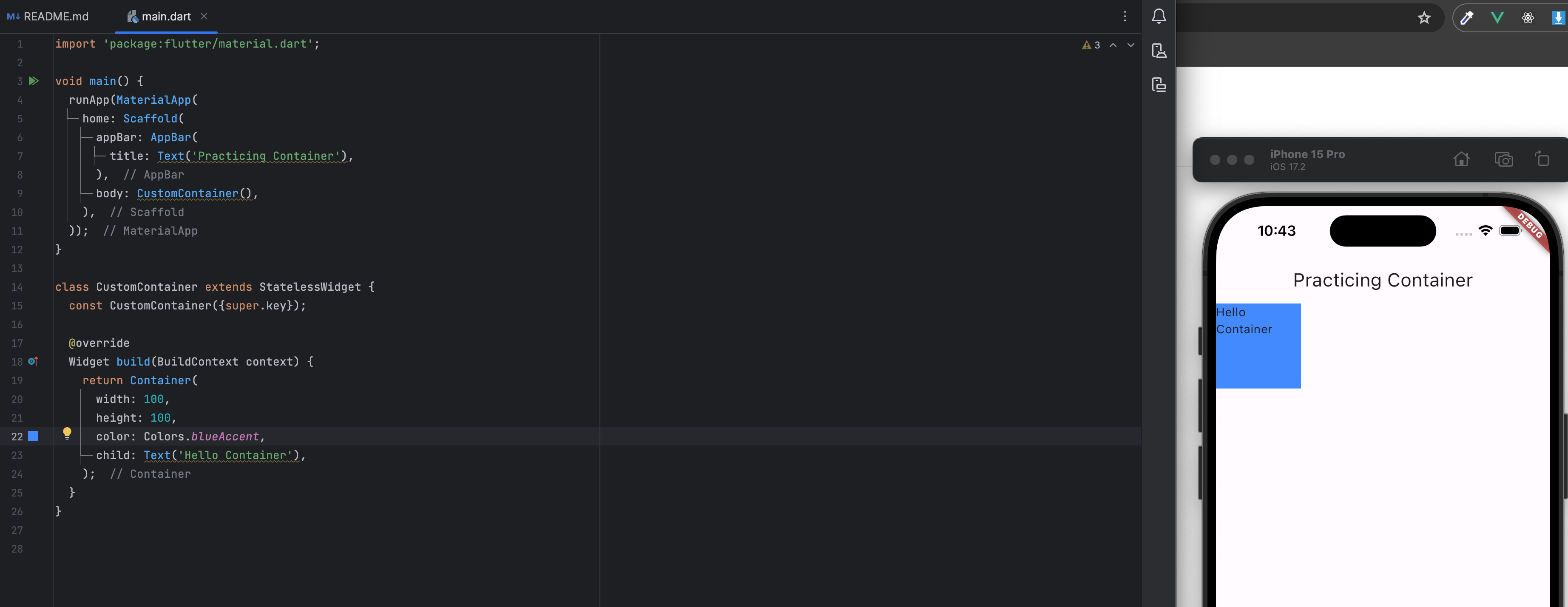 title: Text('Practicing Container'),