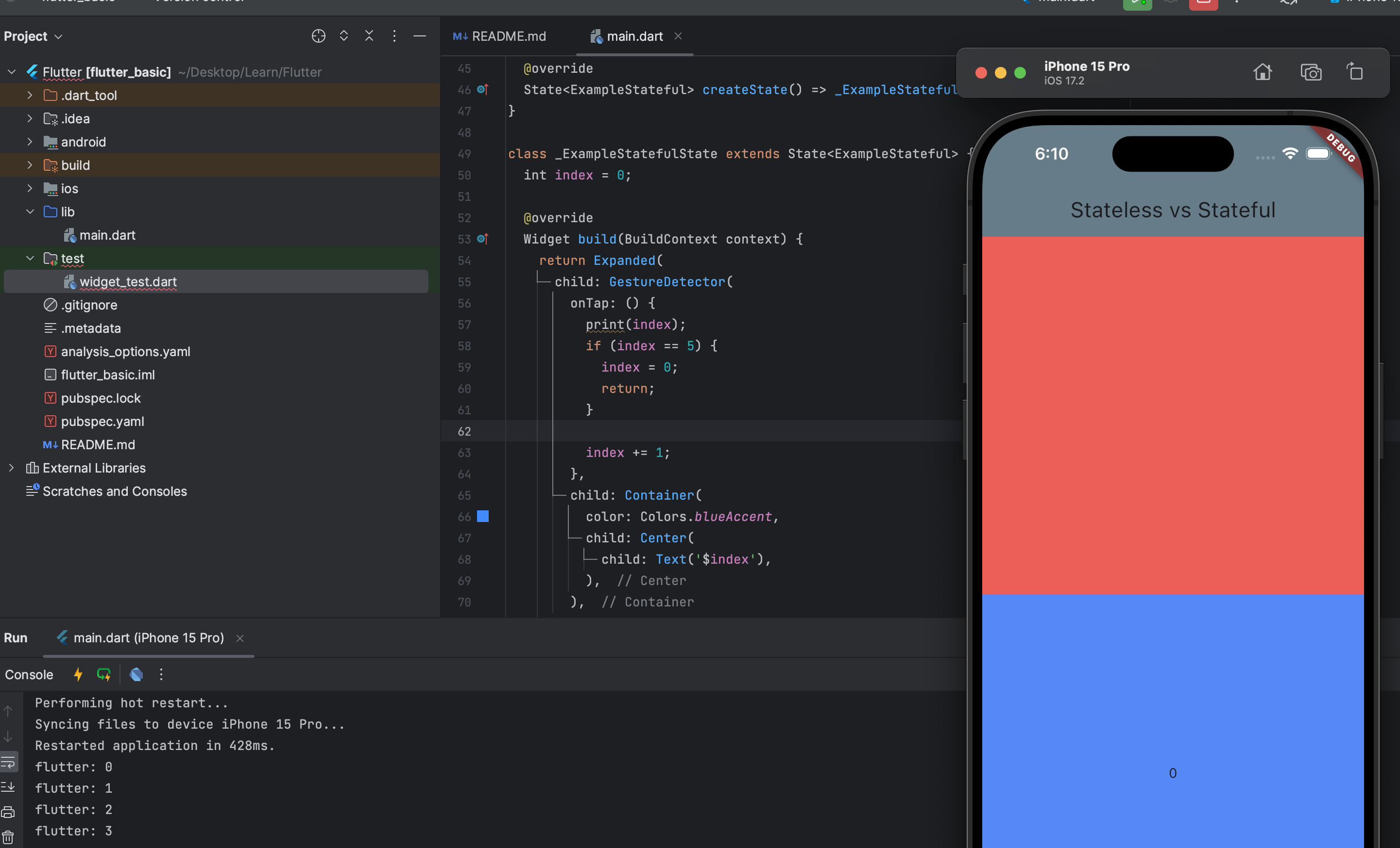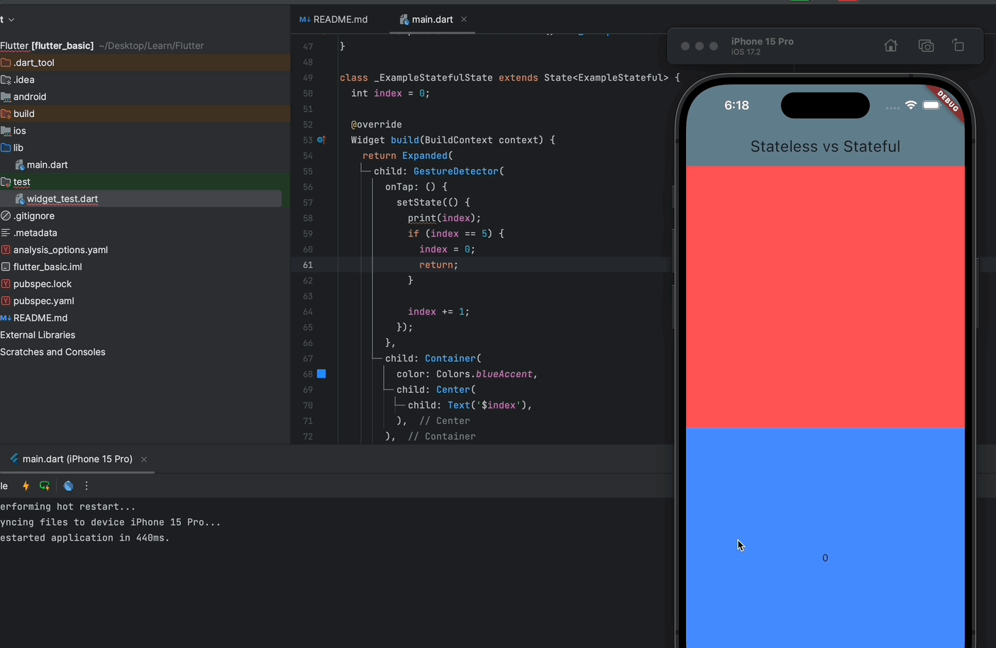 지금은 예시로 아래 사진과 같이 사용자의 Tap을 감지하면 상태값을 1씩 증가시키는 로직을 작성해보자.