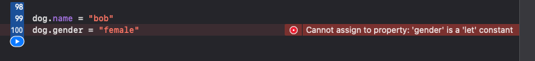 변수 타입의 저장 프로퍼티는 값의 변경이 가능한 데 반해 상수 타입의 저장 프로퍼티는 값을 할당할 수 없다.