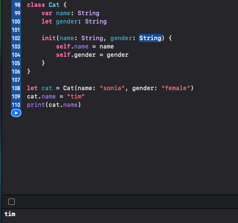실행 결과는 다음과 같이 cat의 name이 sonia에서 tim으로 바뀐 것을 확인할 수 있다.