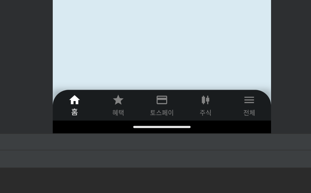 그러면 이제 아래와 같이 토스 앱의 하단과 비슷한 네비게이션 바가 완성된다.