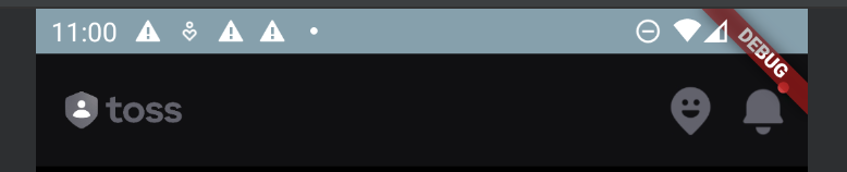 상단바는 이렇게 구현해주었는데, 아래와 같이 하나의 Row 위젯에 아이콘과 간격을 children으로 나열하고, 최대 길이의 간격이 필요한 곳에는 Expanded와 빈 Container 위젯을 활용해 늘려주었다. (justify-between의 효과)