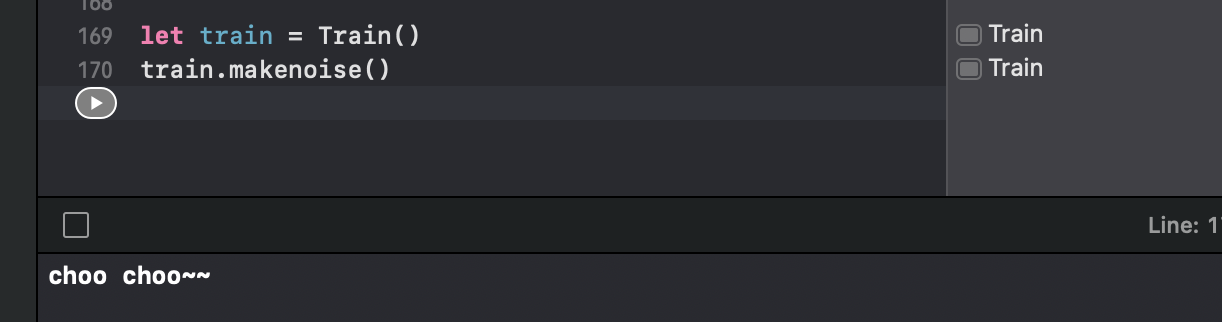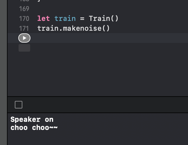 Vehicle의 프로퍼티인 makenoise() 메소드를 오버라이딩하여, "choo choo~~"라는 문자열을 출력하도록 하였다.
