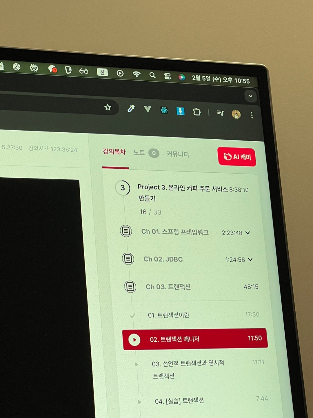 바로 이어서 트랜잭션에 대해 공부했다. (이쪽이 조금 더 재밌을 것 같았다)