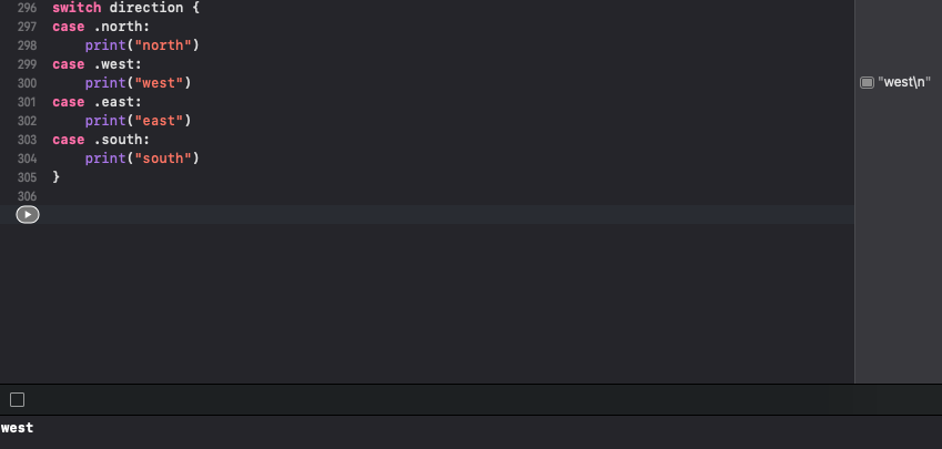 direction 인스턴스에 대해 switch 구문을 작성하고 실행해보면,