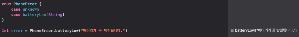 이렇게 항목의 연관값을 할당받을 상수를 소괄호 자리에 지정해주면, 연관값을 활용할 수 있다.
